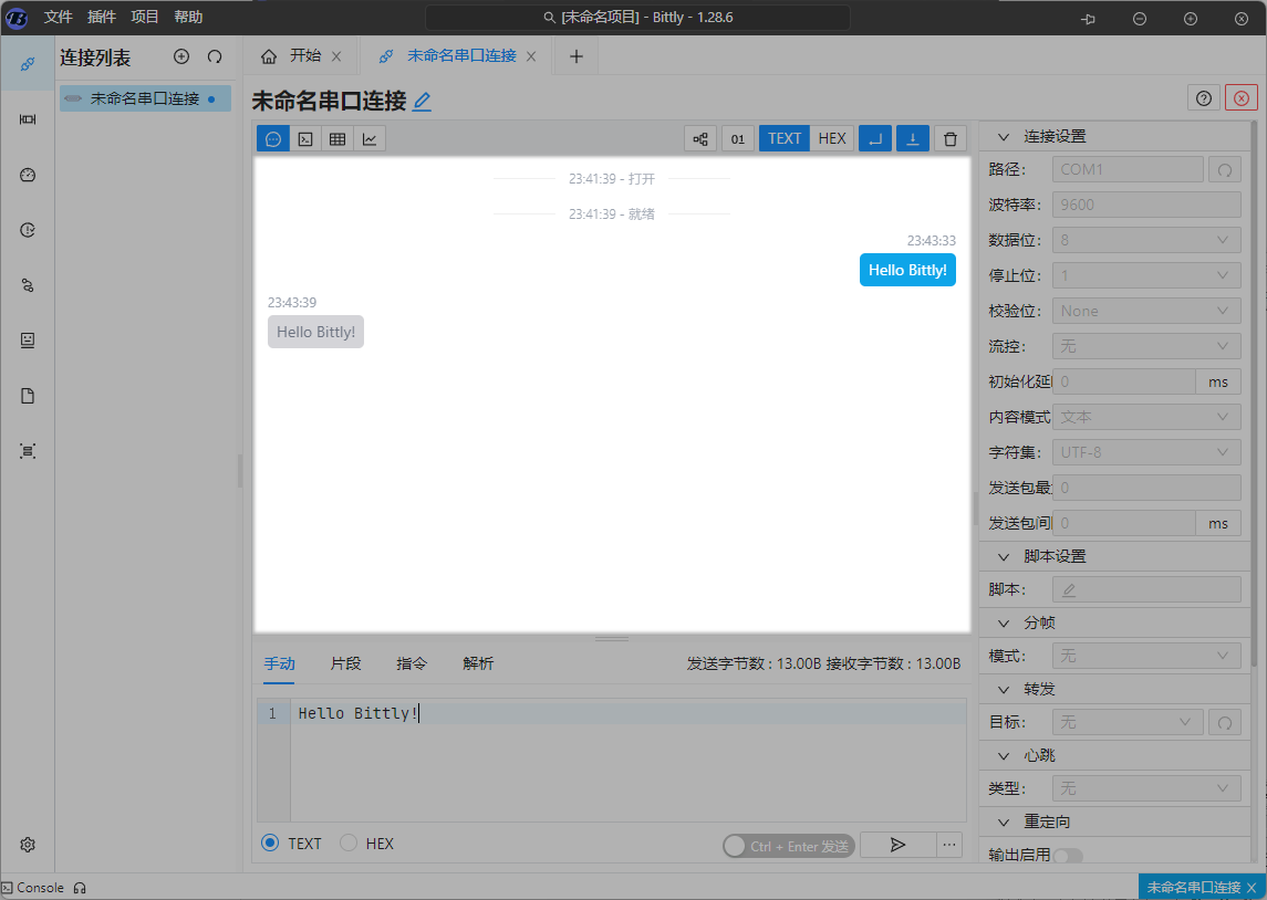 - ✅ 使用Bittly成功实现了数据的发送与接收。