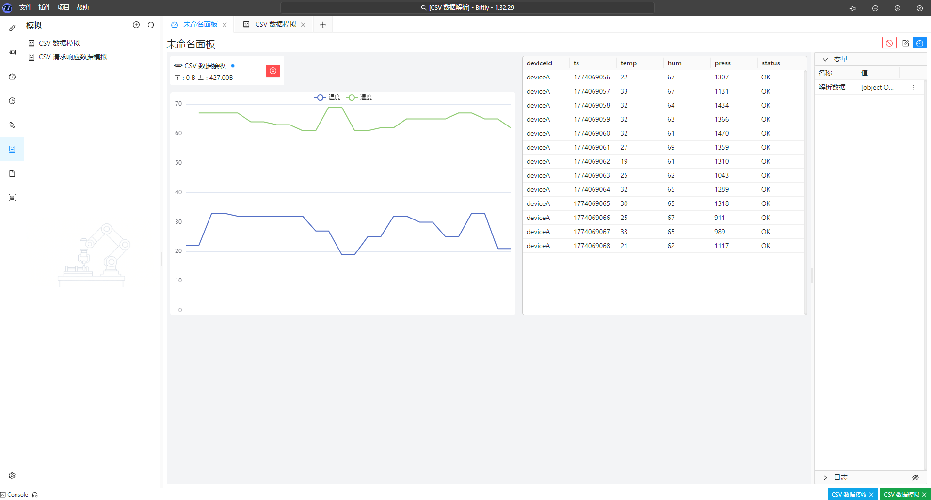 通过这一流程,Bittly 可以将原本难以理解的 CSV 数据,快速转化为直观、可交互的可视化结果,显著提升设备调试、数据分析与实时监控的效率。