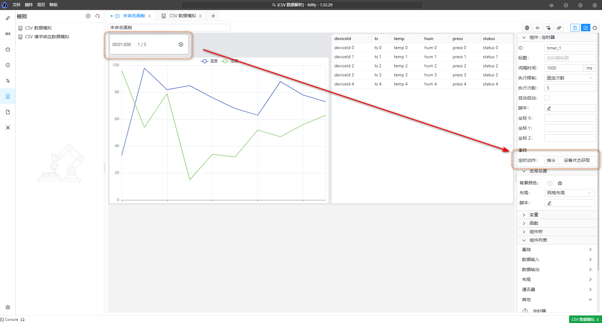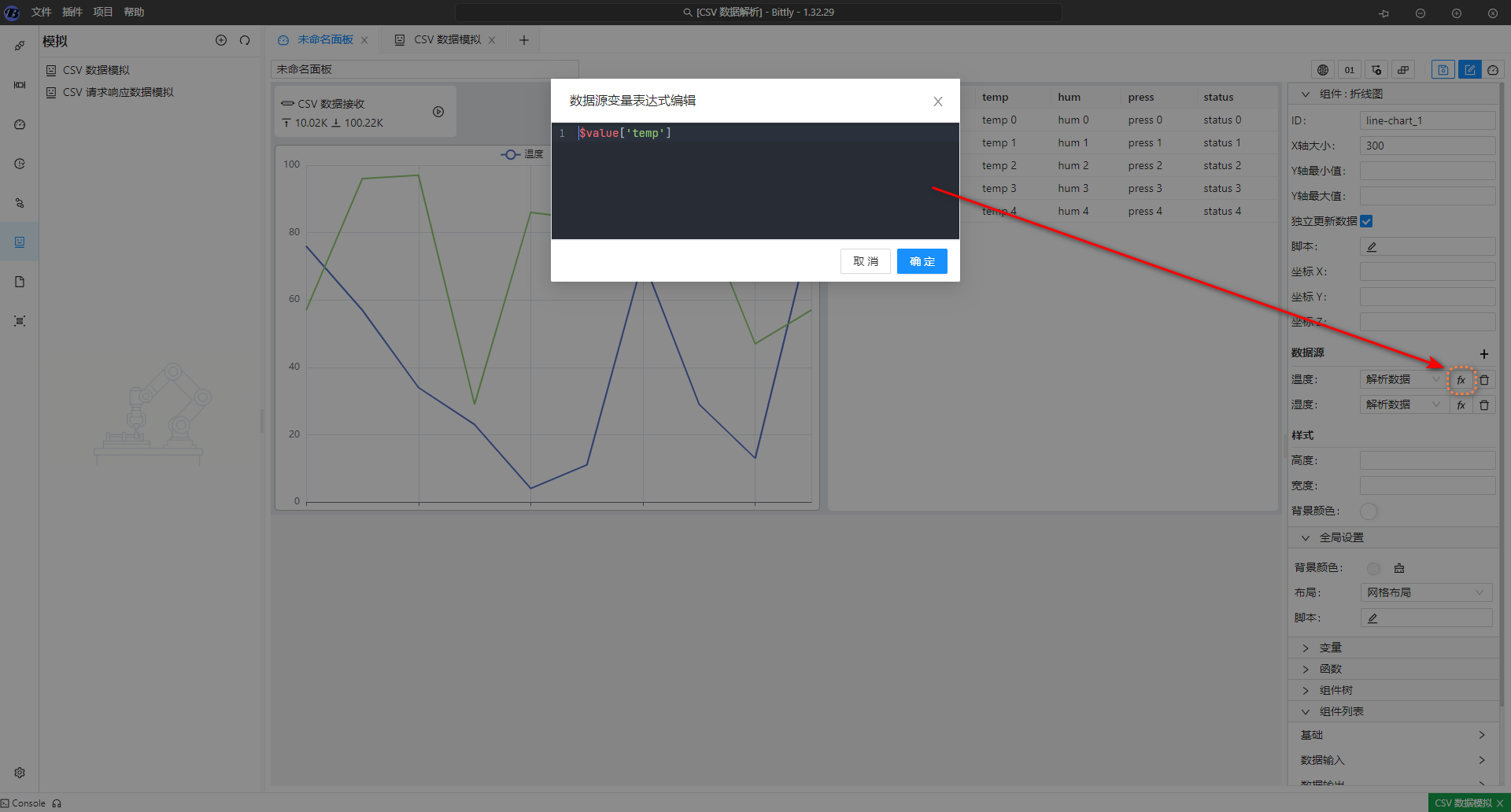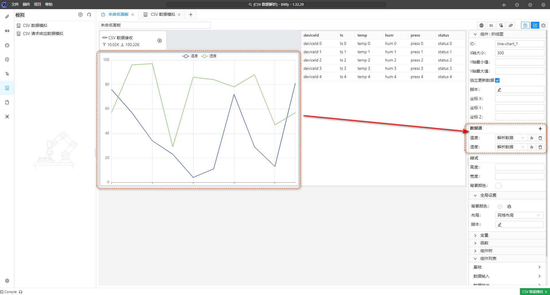 这里将介绍如何在 Bittly 中完成 CSV 数据的解析,并将其绘制为折线图。