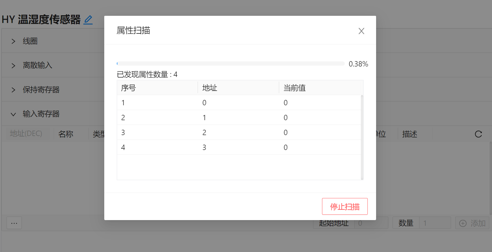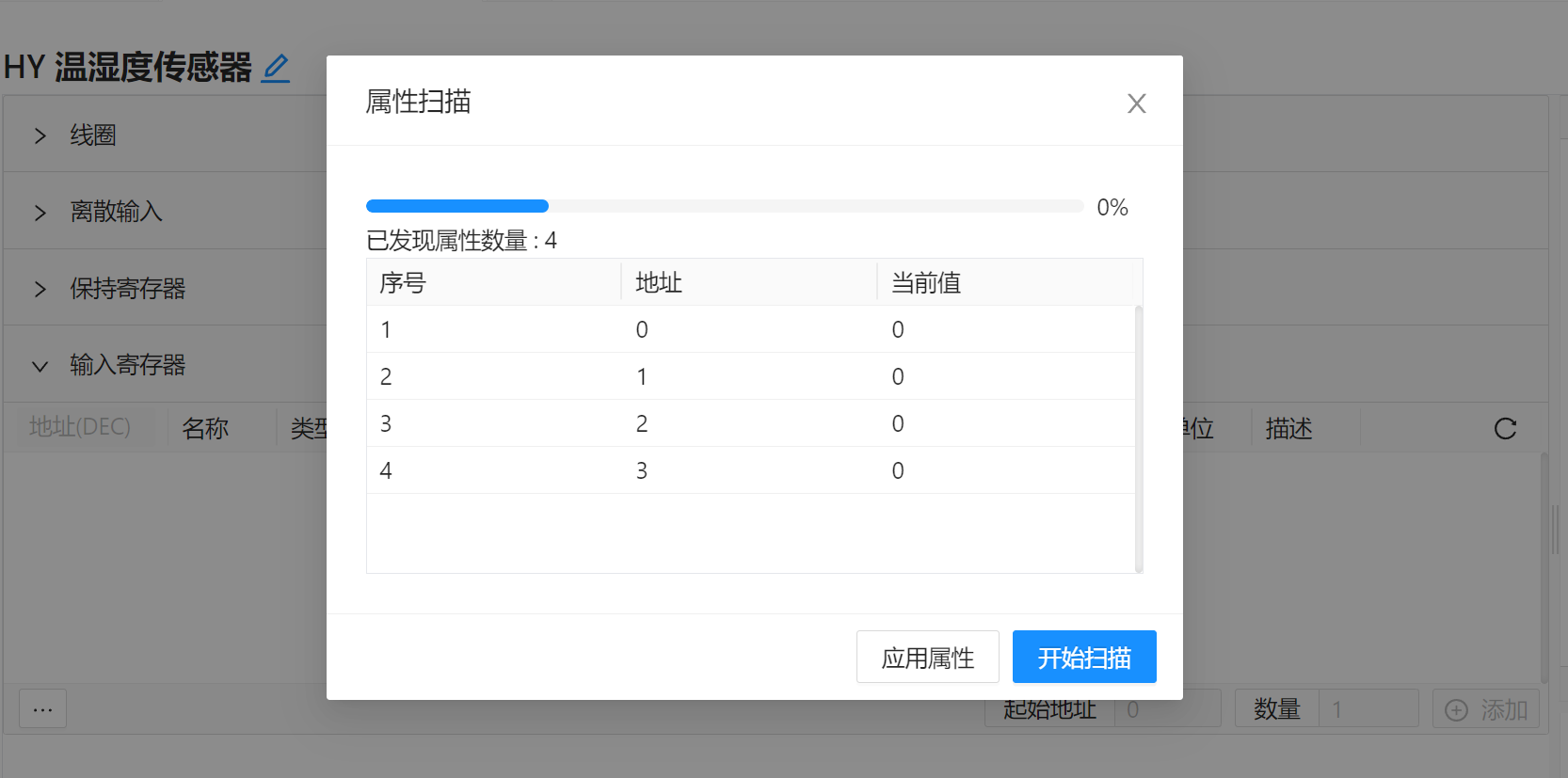 停止后点击 应用属性 即可将扫描到的属性应用到数据区列表中